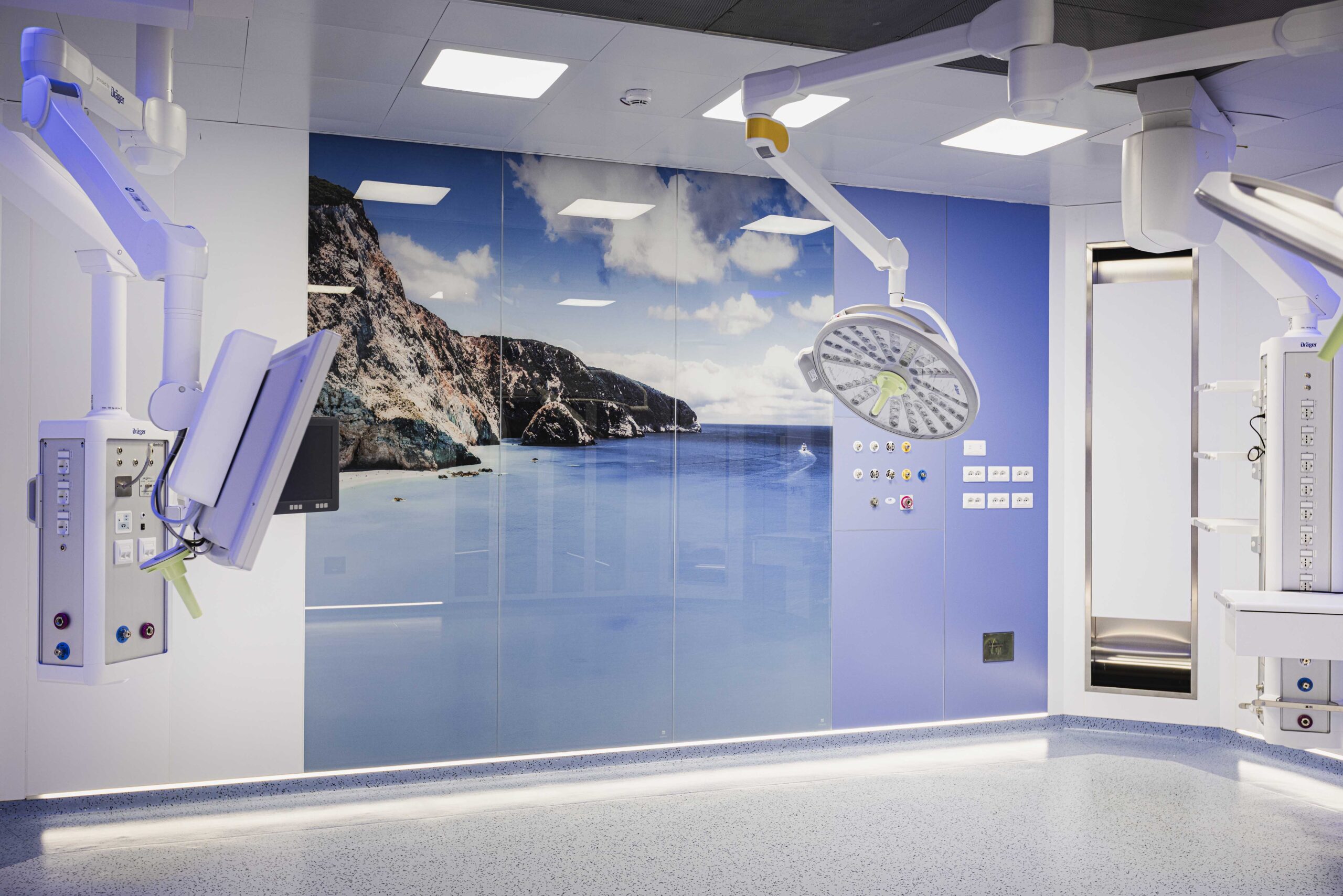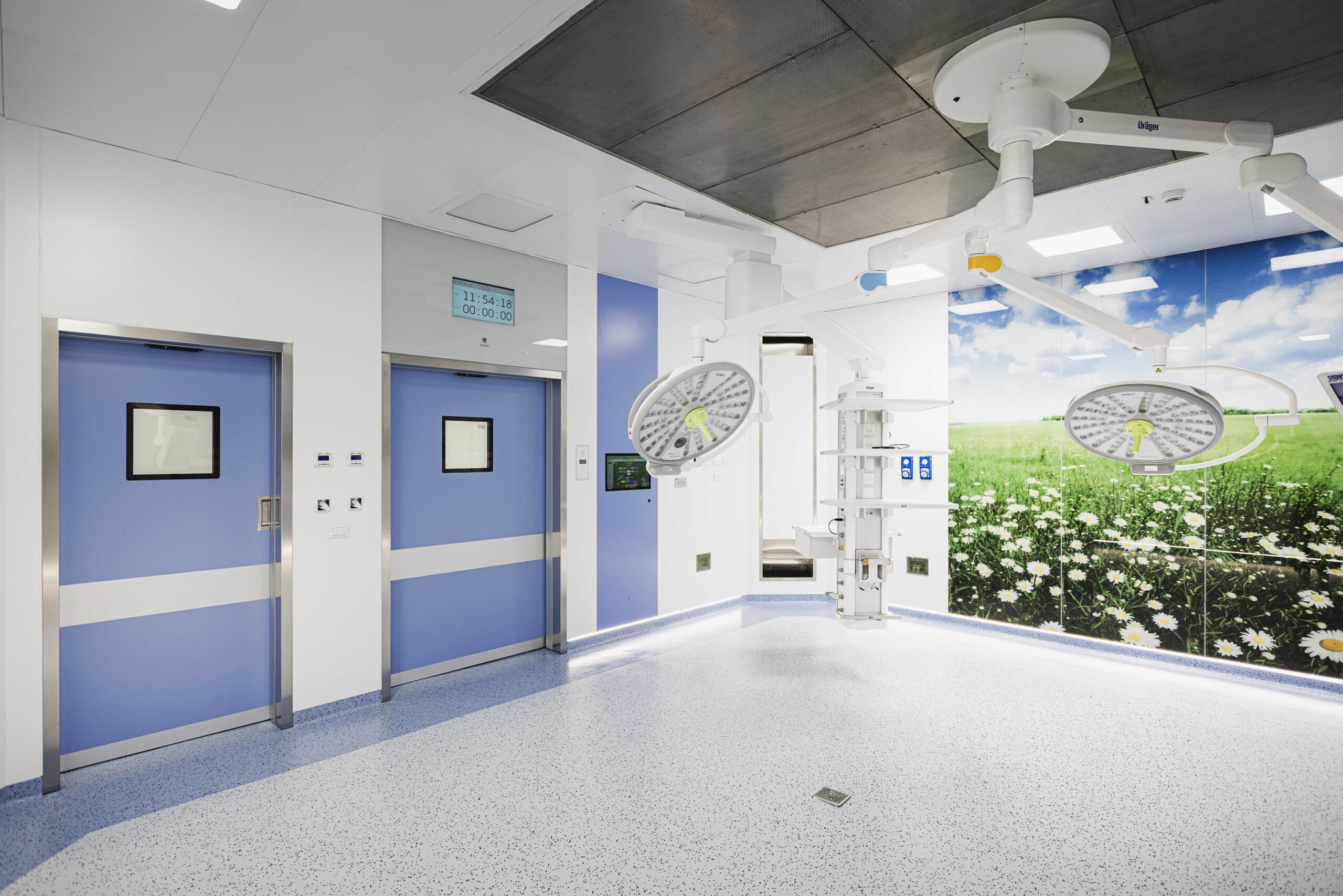 Blocco operatorio per 3 sale ISO 5 comprensive di attrezzature medicali e sistemi di integrazione audio-video di sala.